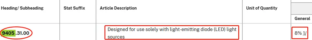 Import duties on LED lights from China can vary based on the type of LED lighting and the tax policies of the importing country. To find the correct duty rate, check the LED light HS codes with your supplier or search on your country’s official Customs website. Let’s take the US as an example.